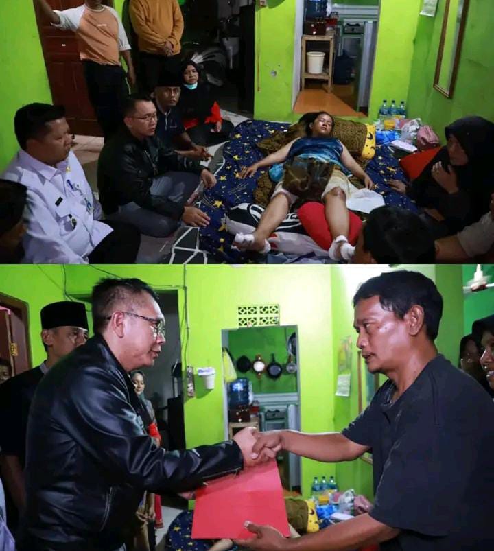 Bekasi – Rabu (28/2), malam, Pj. Bupati Bekasi daniramdan beserta jajaran mengunjungi dan memberikan santunan kepada Indah Agustiani (26), warga Desa Jejalen, Kecamatan Tambun Utara, korban perampasan kendaraan bermotor.
