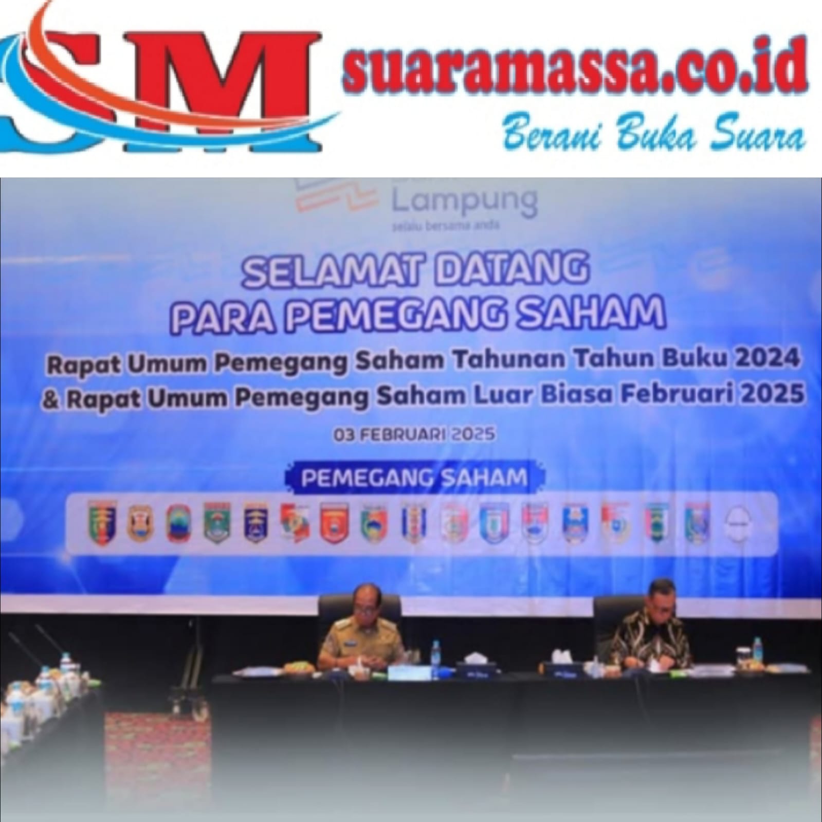 ||Suara massa.co.id.||Bandar Lampung, 5 Februari 2025 – Penjabat (Pj) Bupati Tulang Bawang, Ir. Ferli Yuledi, SP., MM., MT, didampingi oleh Kepala Badan Pengelolaan Keuangan dan Aset Daerah (BPKAD) mengikuti Rapat Umum Pemegang Saham (RUPS) Luar Biasa Januari 2025 PT. Bank Pembangunan Daerah Lampung. Acara ini berlangsung di Ballroom Hotel Novotel, Bandar Lampung.