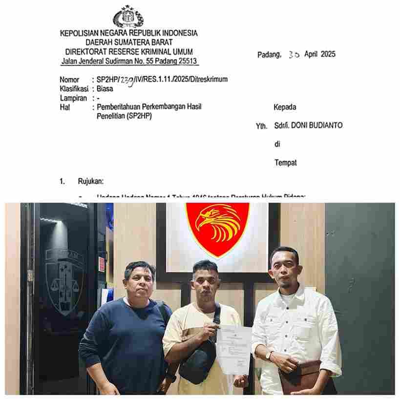 Doni Budianto, didampingi oleh Penasehat Hukumnya, Soni, S.H., M.H., sebelumnya telah melaporkan kasus ini ke Polda Sumbar. Soni menyambut baik langkah cepat yang diambil oleh Ditreskrimum Polda Sumbar. Ia menyampaikan harapannya agar proses penyelidikan berjalan transparan dan keadilan dapat ditegakkan bagi kliennya.