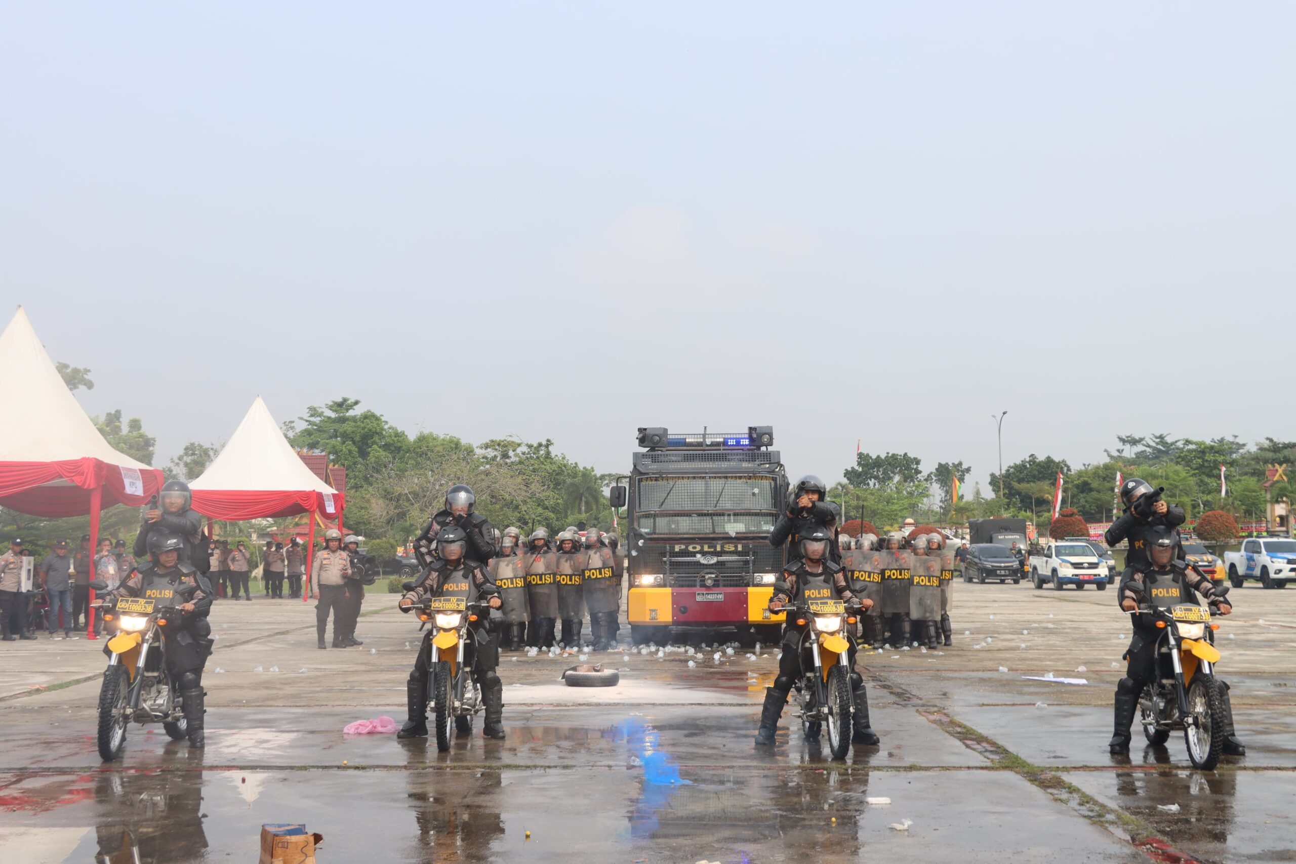 Acara dilanjutkan dengan peragaan simulasi yang mencakup berbagai skenario, termasuk kampanye di rumah warga, tahap masa tenang, pencoblosan, perhitungan surat suara, penanganan unjuk rasa di kantor KPU, serta pengamanan kantor KPU oleh personel Polres Pelalawan. Simulasi ini bertujuan untuk mempersiapkan personel menghadapi berbagai situasi yang mungkin terjadi selama Pemilu Kada 2024.