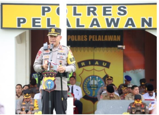 Bertindak selaku pimpinan apel Kapolres Pelalawan AKBP Suwinto SH SIK, perwira apel Kasat Lantas AKP Lily Sulfiani SIK dan komandan upacara KSPKT Iptu Leonardo Sitanggang SH.