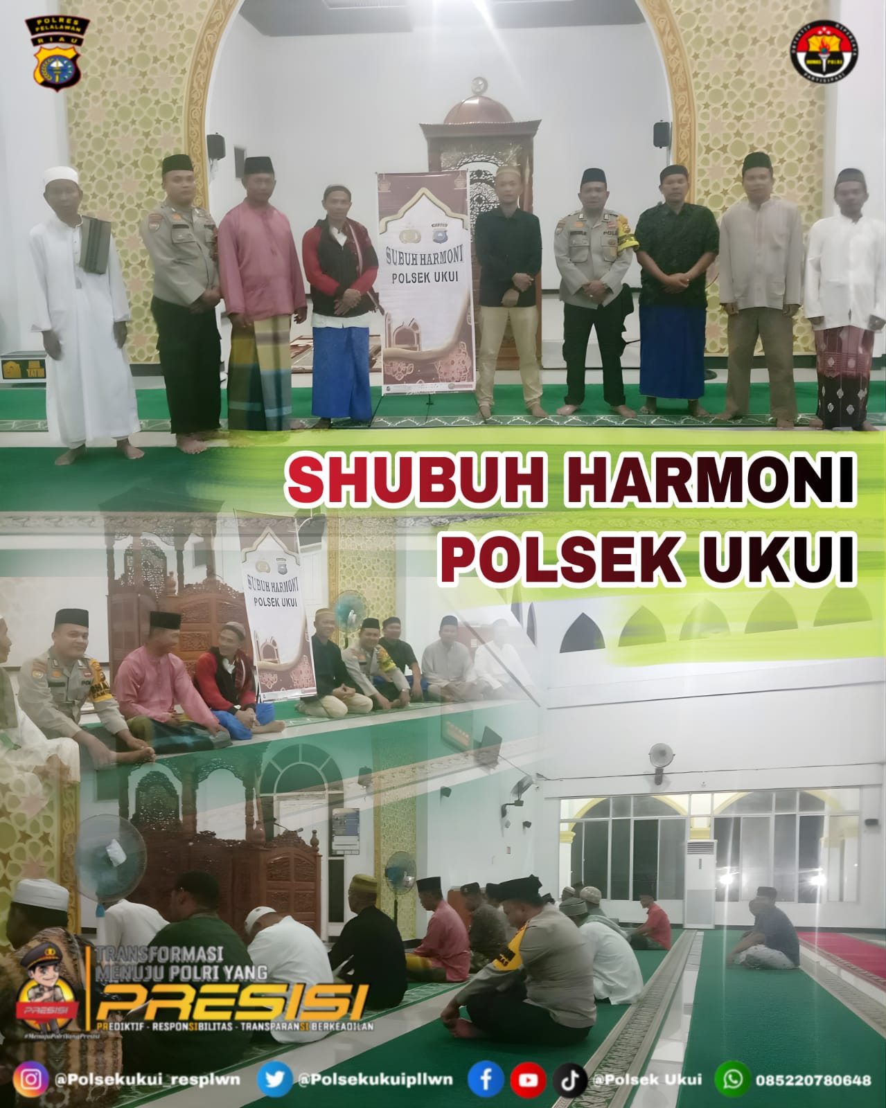 Kegiatan subuh harmoni bertujuan untuk meningkatkan iman dan taqwa setiap personil polsek ukui sekaligus mempererat silaturahmi antara polsek ukui dengan warga setempat.