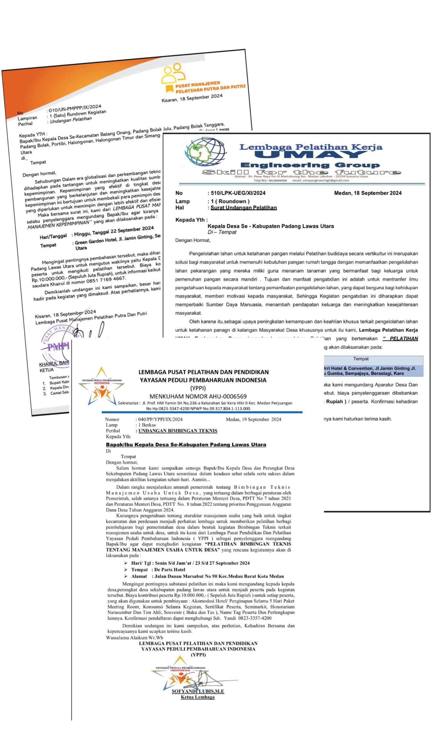 Kegiatan tersebut berlangsung selama lima hari empat malam, dengan tema yang berbeda di setiap hotel. Di antaranya, “Pelatihan Manajemen Kepemimpinan” di Hotel Green Garden Berastagi dan “Desa Tangguh Bencana dan Penguatan Ekonomi Desa” di Hotel Danau Toba Internasional. Namun, perhatian publik lebih terpusat pada biaya yang harus ditanggung oleh setiap desa. Berdasarkan undangan yang beredar, setiap desa diminta mengirimkan enam peserta dengan biaya Rp10 juta per peserta, yang berarti setiap desa harus mengeluarkan biaya sebesar Rp60 juta.