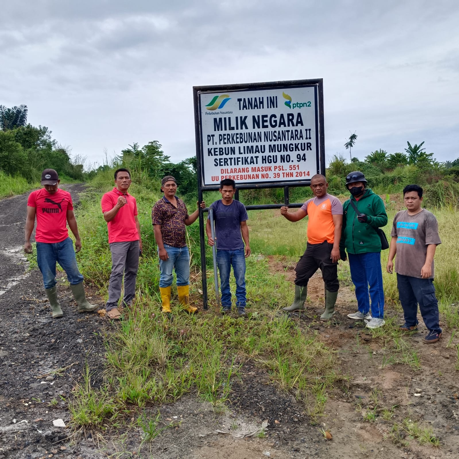 *Teks foto : Petugas Kebun Limau Mungkur memasang plank lahan HGU di lokasi garapan warga