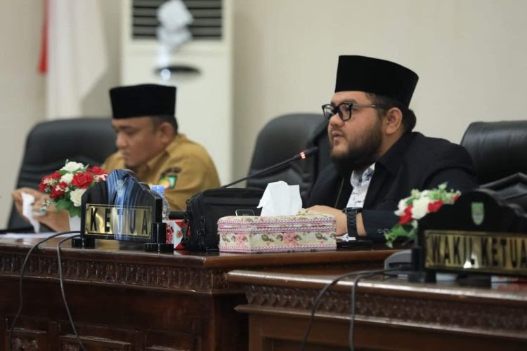 Ketua DPRD Kabupaten Rokan Hulu, Novliwanda Ade Putra ST pimpin rapat paripurna penyampaian tiga Ranperda yang dihadiri Bupati Kabupaten Rokan Hulu, H Sukiman diwakili Sekretaris Daerah Kabupaten (Sekdakab) Rokan Hulu, Zaki S.STP M.Si.