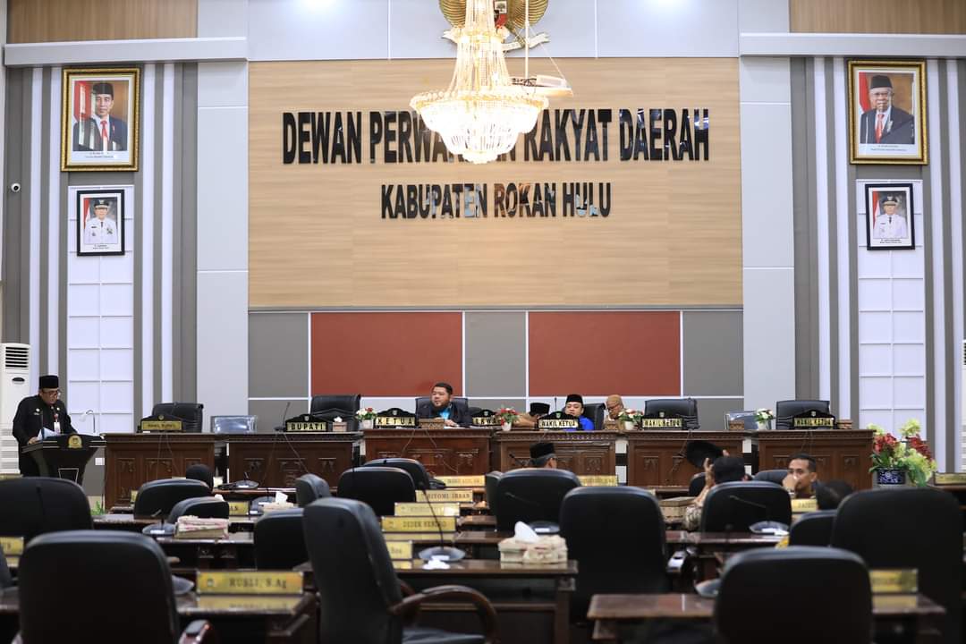 Rokan hulu – Selasa, 19 Maret 2024, Pemerintah Kabupaten menggelar Rapat Paripurna untuk menyampaikan jawaban atas pemandangan umum fraksi-fraksi terkait Laporan Keterangan Pertanggungjawaban (LKPJ) Bupati Tahun 2023. Rapat ini dihadiri oleh seluruh anggota DPRD dan pejabat terkait. Dalam sambutannya, Bupati Rokan hulu yanh diwakili Sekda menjelaskan langkah-langkah yang telah diambil untuk meningkatkan transparansi dan akuntabilitas. Beberapa fraksi memberikan masukan konstruktif untuk perbaikan ke depan. Rapat berlangsung lancar dan diharapkan dapat meningkatkan sinergi antara pemerintah dan legislatif.