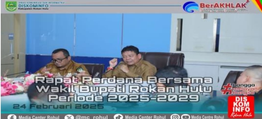 Rokan Hulu– Setelah resmi dilantik pada 20 Februari lalu, Pemerintah Kabupaten (Pemkab) Rokan Hulu (Rohul) melaksanakan rapat perdana di ruang rapat lantai III Kantor Bupati, Senin (24/02/2025). Kegiatan ini dipimpin oleh Wakil Bupati (Wabup) Rohul H. Syafaruddin Poti, S.H., M.M, yang didampingi oleh Sekda M. Zaki, S.STP, M.Si, serta Kepala OPD, Asisten, dan Staf Ahli se-lingkungan Pemerintah Kabupaten Rohul.