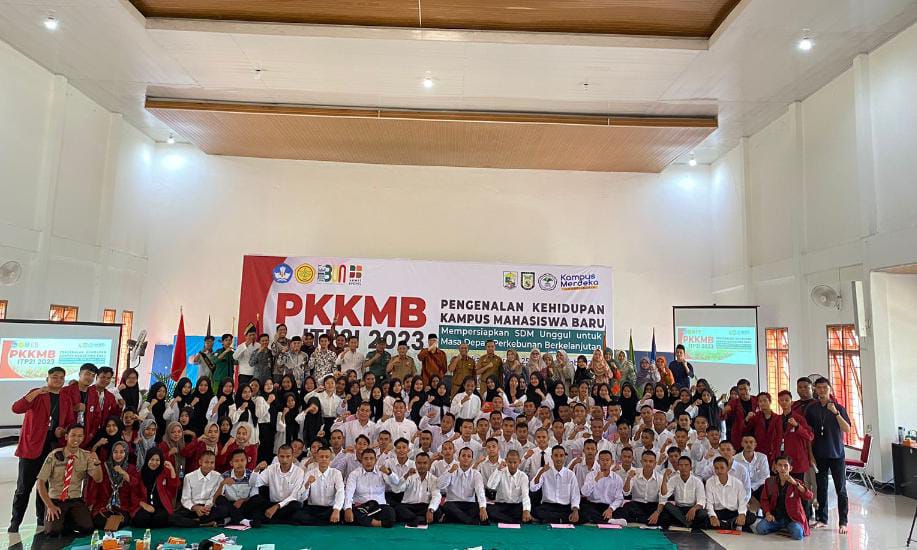 Pelalawan ||- Rektor Institut Teknologi Perkebunan Pelalawan Indonesia (ITP2I) Prof. Dr. Ir. H. Tengku Dahril M.Sc. hadir dan buka kegiatan Pengenalan Kehidupan Kampus Mahasiswa Baru (PKKMB) 2023 yang digelar pada Rabu (25/09/2023) di aula kantor Camat Pangkalan Kerinci.