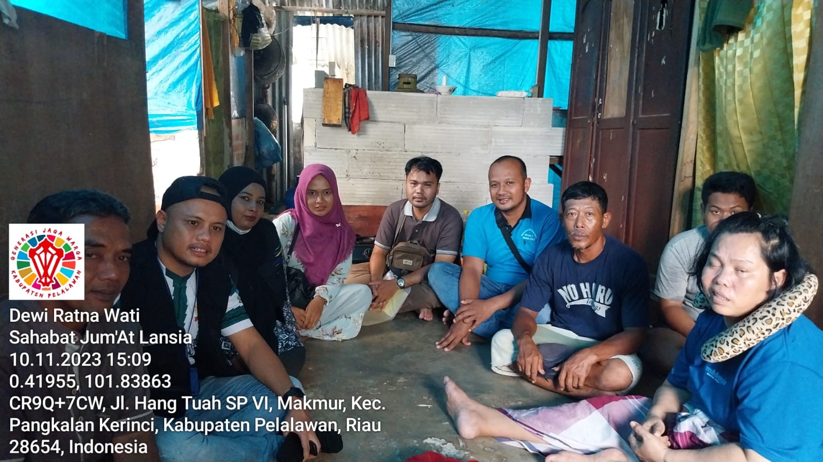 Tim Sahabat Jumat bersama Pendamping Siaga Desa Makmur mendatangi rumah Buk Ratna untuk menyalurkan bantuan sembako di Desa Makmur, Kecamatan Pangkalan Kerinci.