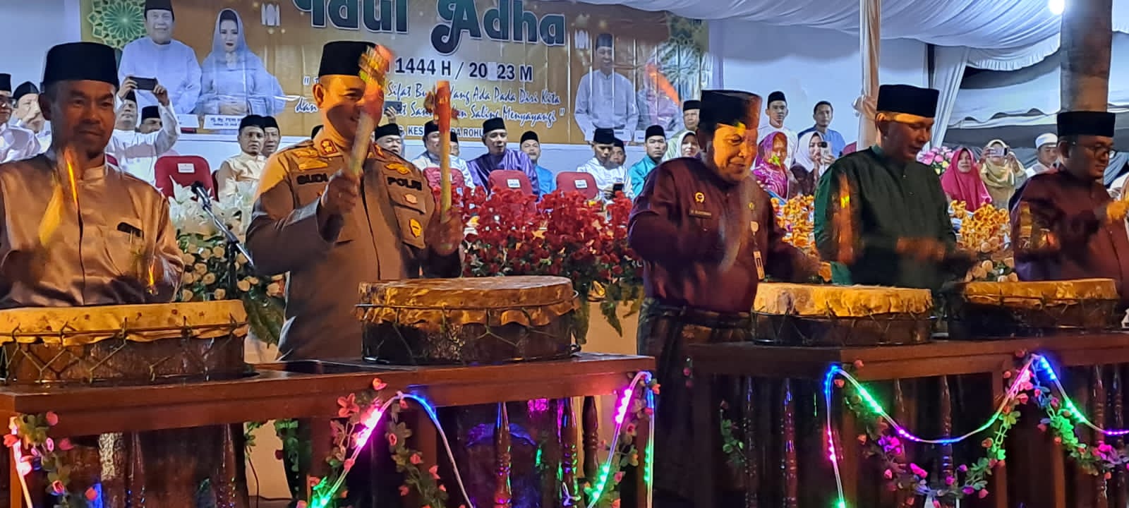 “Dengan rasa haru dan bahagia saya ucapkan, sebab ini merupakan malam yang begitu istimewa di mana selama Pandemi Covid 19, dua tahun belakangan ini kita tidak merayakan Malam Takbiran Idul Adha, karena penerapan protokol kesehatan dan pembatasan kegiatan di luar maupun di dalam ruangan, sehingga acara kita vakumkan, dengan upaya dan kepatuhan kita, sehingga kita dapat melaksanakan acara malam takbiran dengan aman dan lancar malam ini,” urai H. Sukiman.