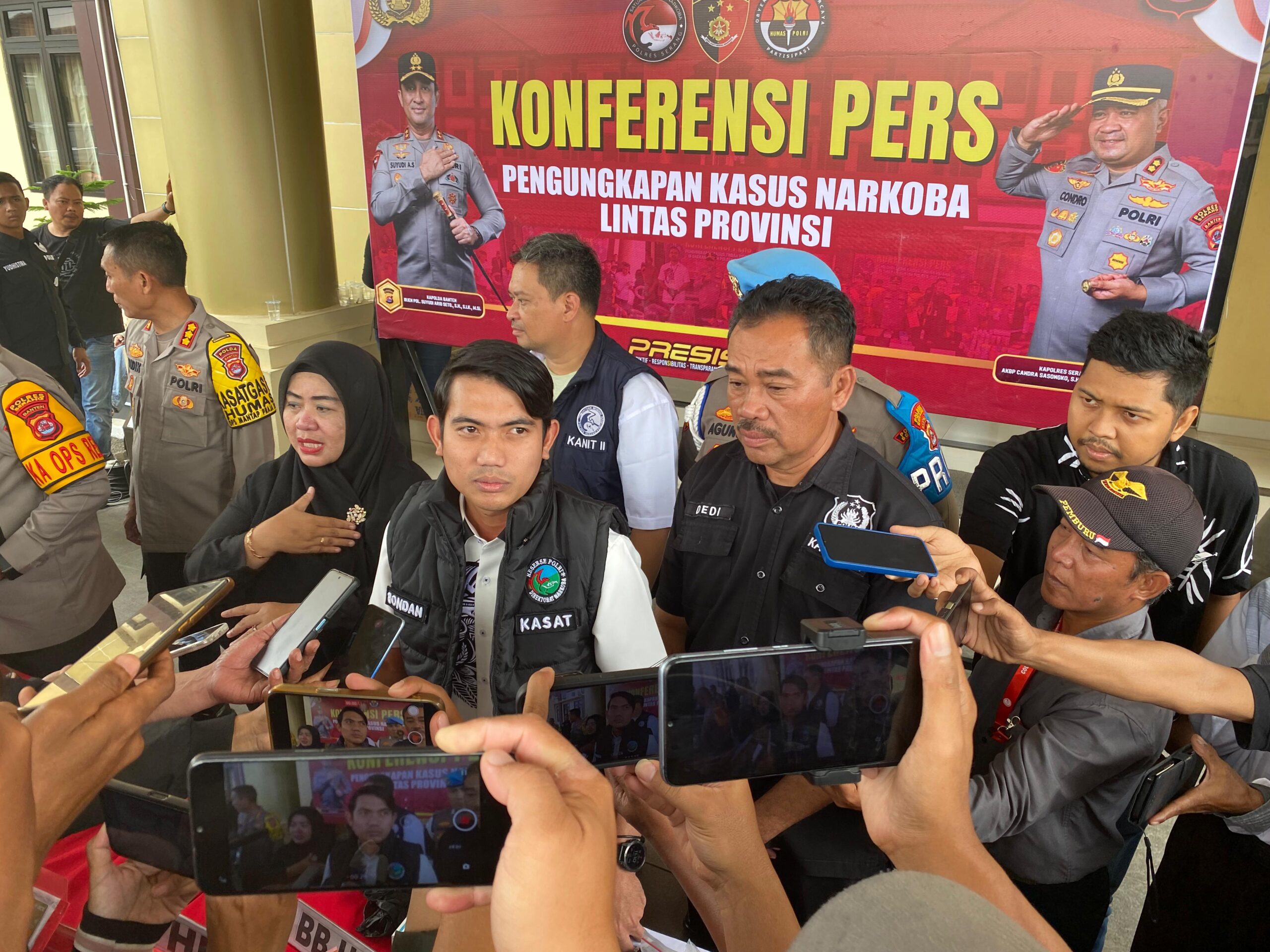 “Dua Bandar Sekaligus Kurir Sabu Dan Ekstasi Ini Ditangkap Di Lokasi Berbeda Di Kota Pekanbaru Pada Senin (16/9) Kemarin. Kedua Tersangka Mengendalikan Peredaran Sabu Lintas Provinsi,” Terang Kapolres Serang AKBP Condro Sasongko Dalam Konferensi Pres Di Mapolres Serang, Selasa 24 September 2024.