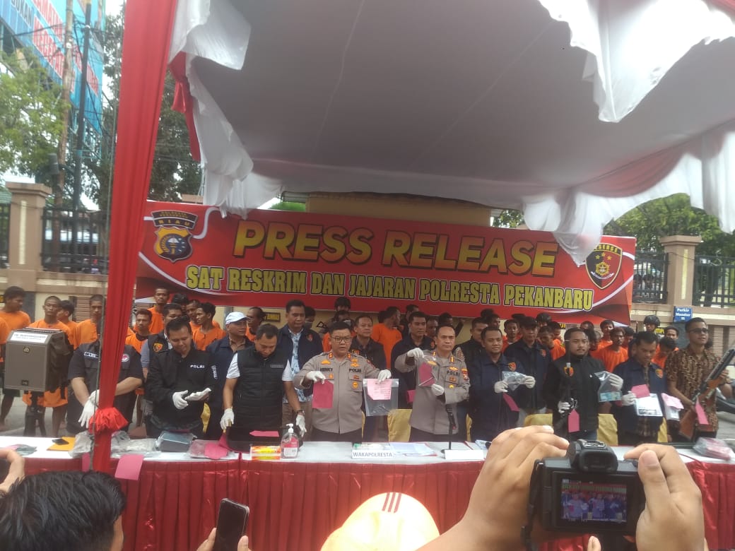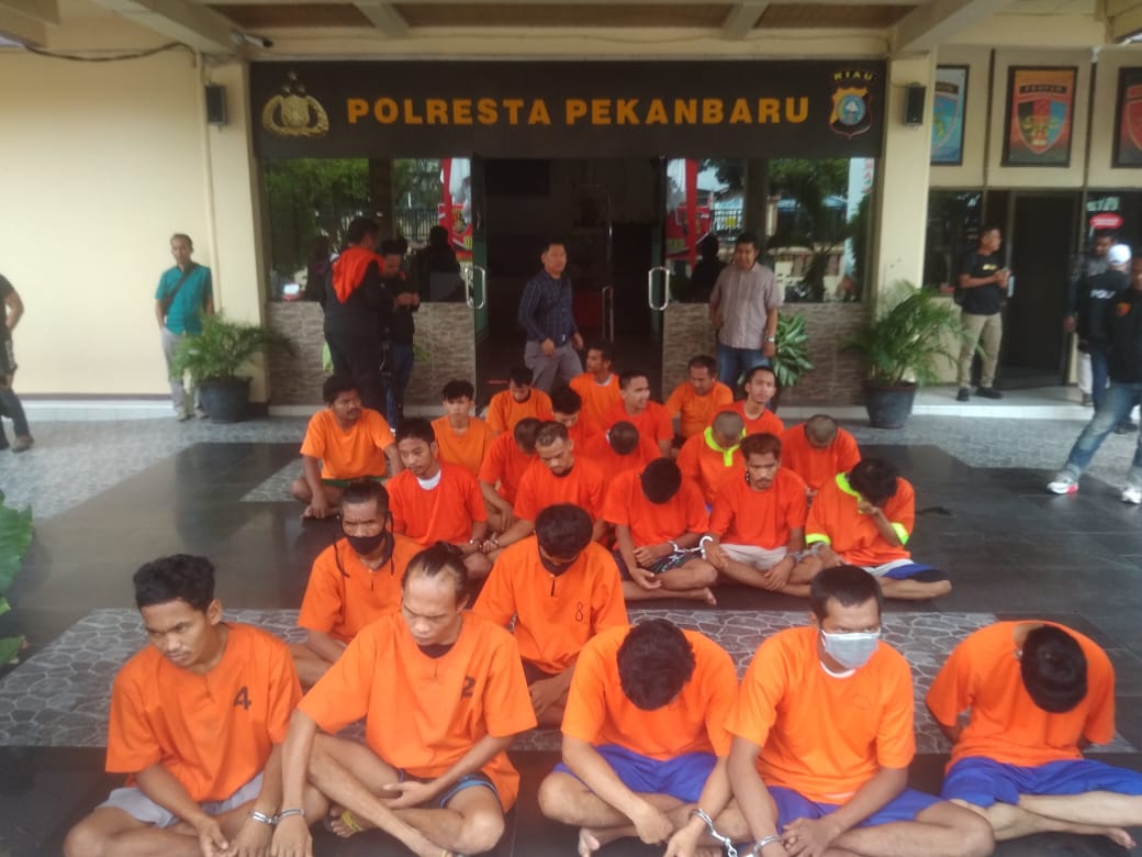 Kapolresta Pekanbaru, Kombes Jefri RP Siagian mengatakan seluruh tersangka diamankan pada waktu Operasi Ketupat Lancang Kuning 2023. Mereka dikumpulkan di Mapolresta Pekanbaru usai operasi.