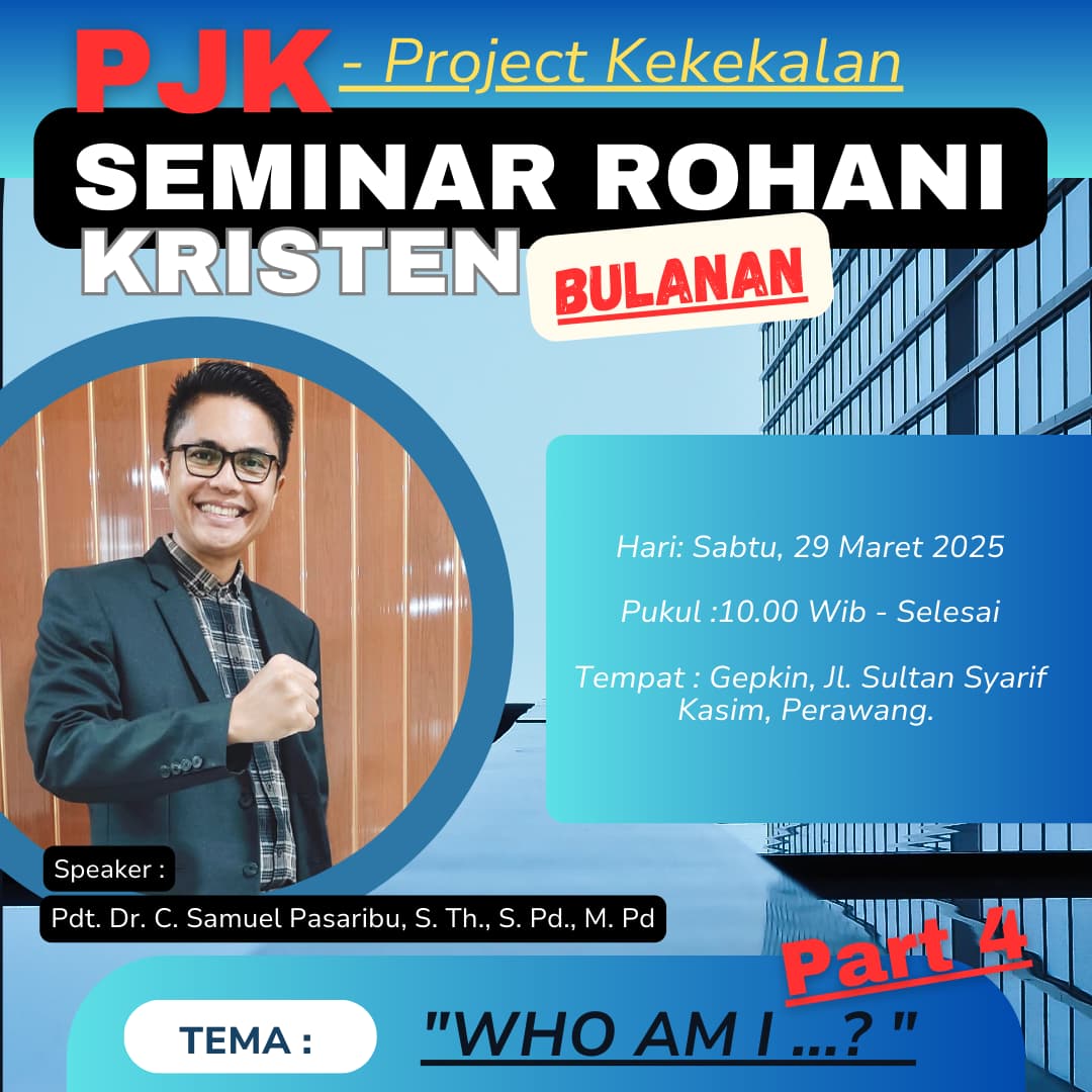 SIAK, 29 Maret 2025 – Gereja Pantekosta Kudus Indonesia (GEPKIN) Perawang kembali menyelenggarakan Seminar PJK – Project Kekekalan, sebuah acara rutin bulanan yang bertujuan untuk menyegarkan iman Kristen di kalangan jemaat dari berbagai lapisan. Seminar ini menghadirkan Pdt. Dr. C. Samuel Pasaribu, S.Th., S.Pd., M.Pd. sebagai narasumber, yang mengajak peserta untuk merenungkan kehidupan manusia dalam perspektif kekekalan.