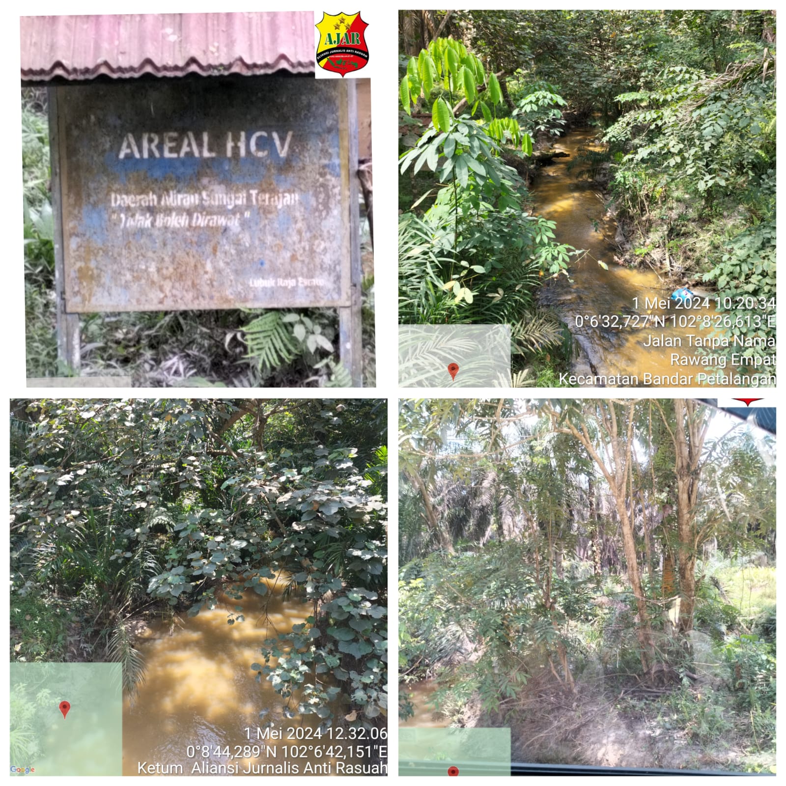 Tidak tangung-tanggung ada sekitar ±400 hektar luas daerah sepadan sungai yang ditanami sawit oleh PT.Serikat Putra sepanjang sungai kerumutan ± 12 Km, sungai terbangiang sepanjang ± 10 Km, sungai air terjun sepanjang ± 5 Km , sungai lubuk ajo sepanjang ± 5 Km, sungai tangguk tinggal ± 4,5 Km, sungai sadak ±3,5 Km dengan panjang keseluruhan ±40 Km.