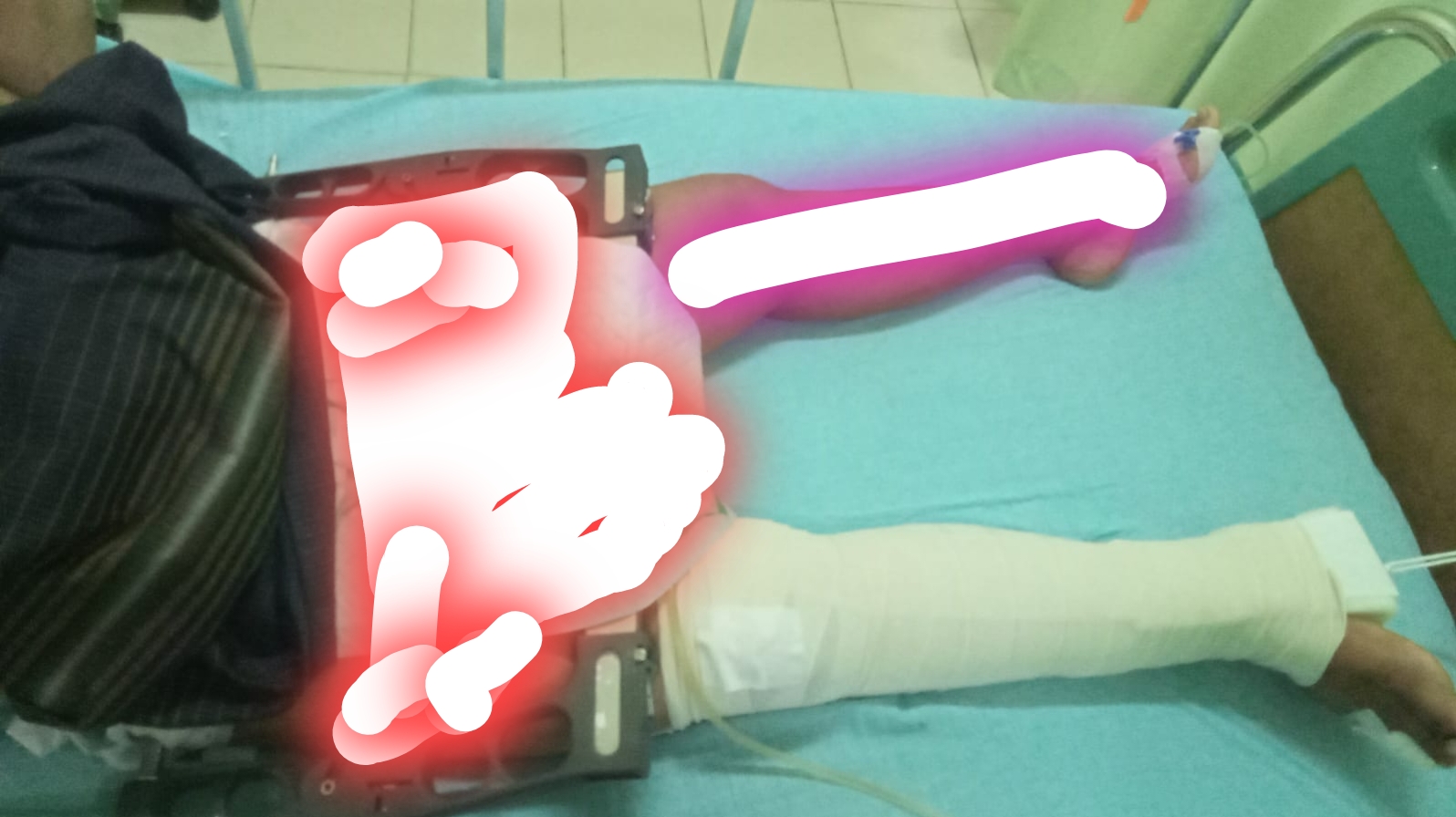 Desi mengeluh besi Pen yang di bor pada panggulnya sempat merembes darah. Tidak berhenti sampai di situ, selang kateter urin sebelumnya sempat bocor dan tumpah di kasur tempatnya tidur. Sempat melaporkan ke bagian petugas piket saat itu tapi lambat mendapat penanganan dari perawat.
