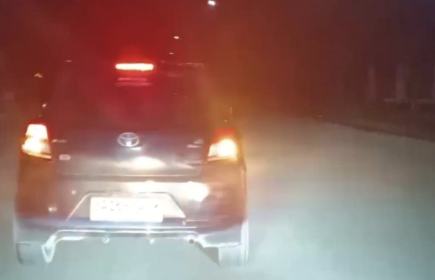 Terlihat para pelaku menggunakan kendaraan Toyota Ayla, Toyota Kijang Innova dan Toyota Calya mencoba mengadang pengendara tersebut.