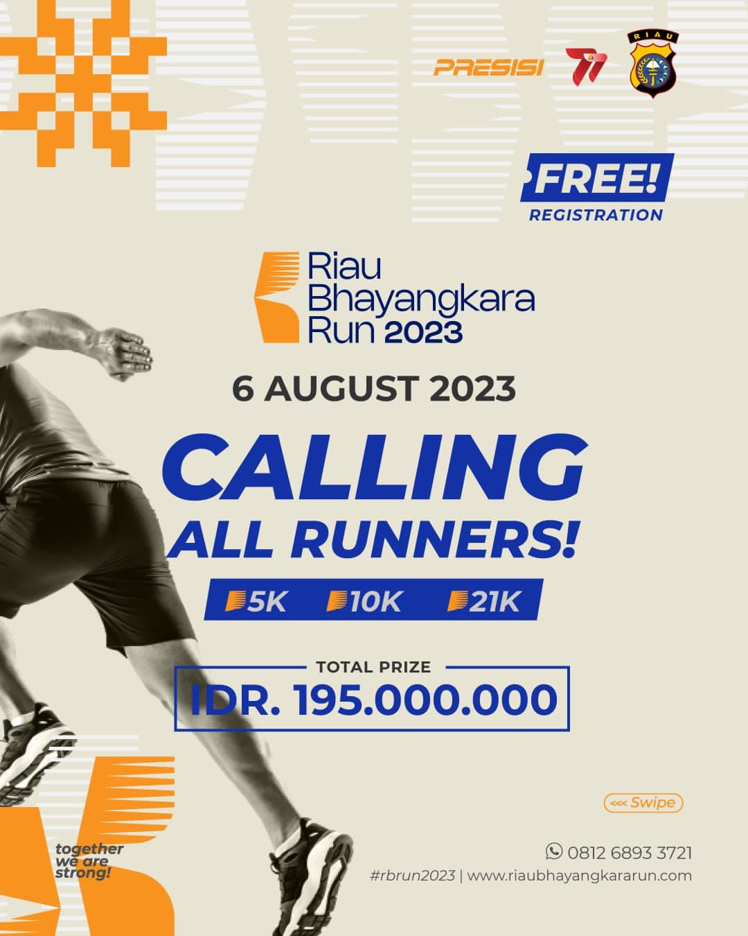 Ketua Pelaksana Riau Bhayangkara Run Kombes Dwi Nur Setiawan mengatakan pendaftaran event berskala nasional ini sudah mulai dibuka mulai 15 hingga 23 Juli 2023.
