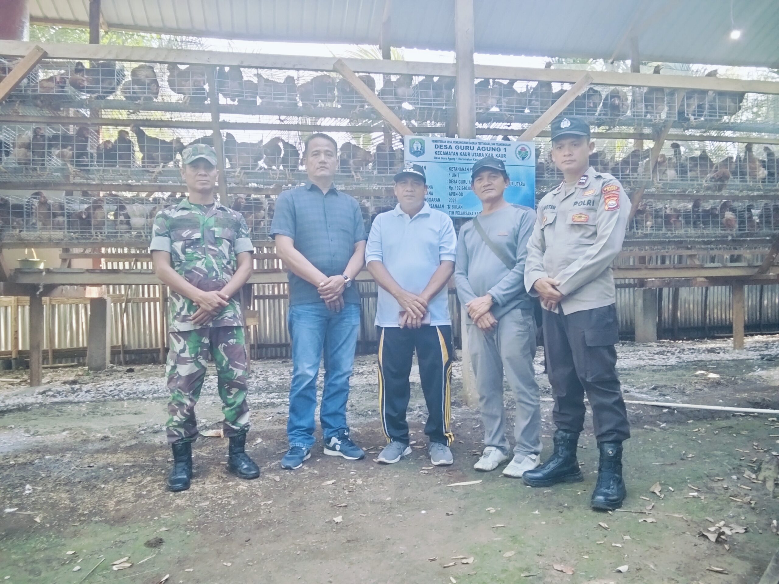 Camat Kaur Utara Gunsi Sunarso,S.IP, Babinsa, Bhabinkamtibmas dan BPD Guru Agung meninjau langsung kandang ayam petelor, terlihat sudah ada Ketahanan Pangan sudah bergerak dengan maksimal.