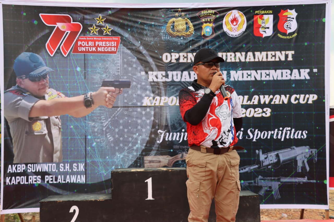 “Kejuaraan menembak ini merupakan ajang bagi teman-teman atlet untuk mengasah kemampuannya, mengasah mentalnya. Mudah-mudahan, melalui Open Ternament Kejuaraan Menembak ini akan melahirkan atlet-atlet penembak yang berprestasi, sehingga bisa tampil baik ditingkat daerah, provinsi, nasional maupun internasional”. Ungkap Kapolres Pelalawan AKBP Suwinto, SH, SIK.