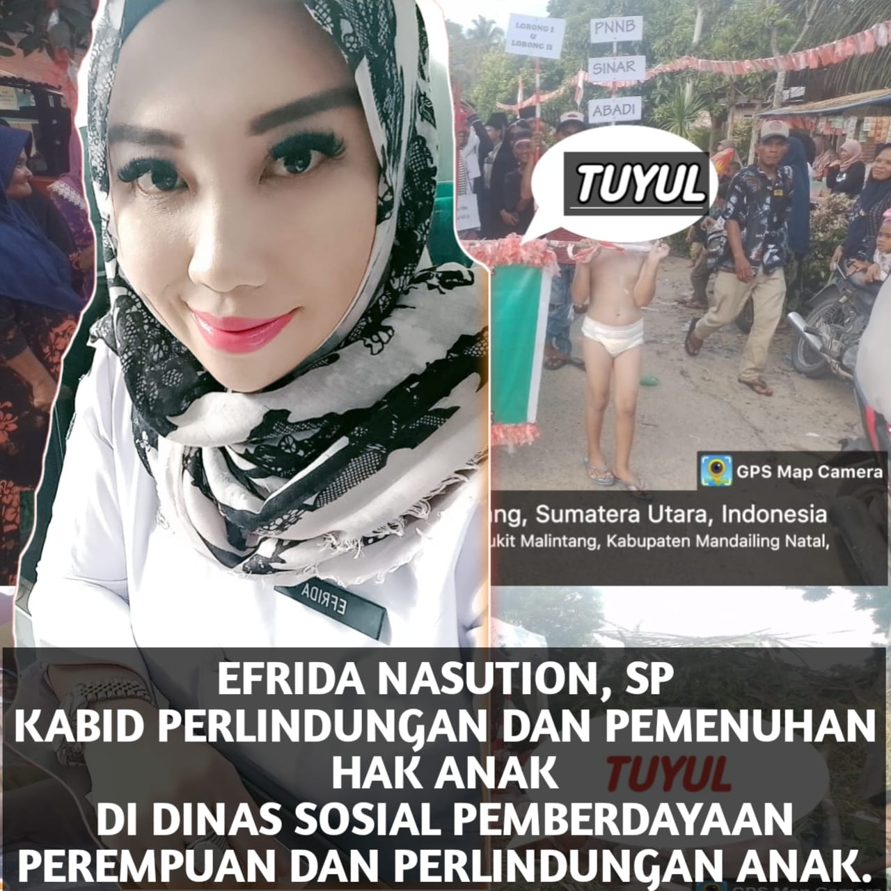 MADINA || – Terkait beberapa belakangan ini berita yang sempat viral mengenai Pemberitaan “Tuyul”di Karnaval perayaaan Kemerdekaan Republik Indonesia ke-78 Di kecamatan Bukit Malintang,Kabupaten Mandailing Natal,Kabid Perlindungan dan Pemenuhan Hak Anak pada Dinas Sosial Pemberdayaan Perempuan dan Perlindungan Anak(PPPA) Kabupaten Mandailing Natal(madina) Efrida Nasution SP, memberi tanggapan.