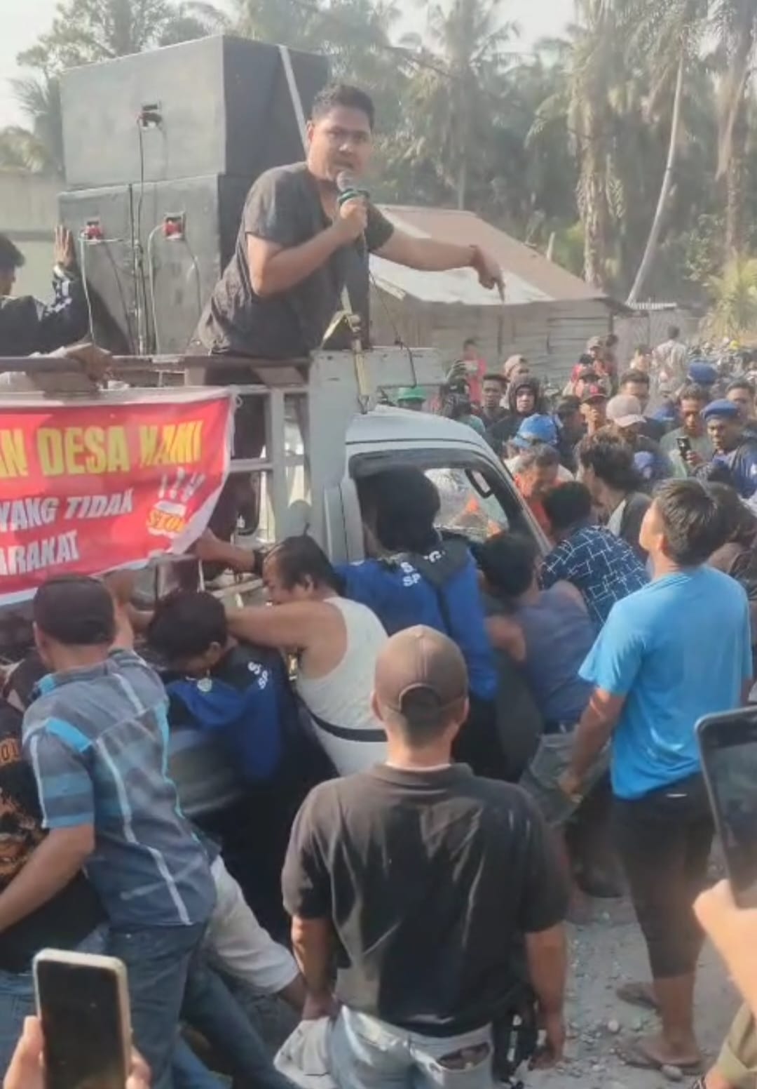 Dalam unjuk rasa tersebut, warga menyuarakan tuntutan terhadap pihak perusahaan PT MAN terkait dugaan pelanggaran hak-hak masyarakat adat dan lingkungan. Aksi yang digelar secara damai itu justru berakhir ricuh setelah sekelompok oknum tak dikenal melakukan penyerangan. Sebuah mobil komando milik warga rusak parah, dan beberapa alat komunikasi dirusak. Sejumlah warga juga mengalami tindak kekerasan fisik.