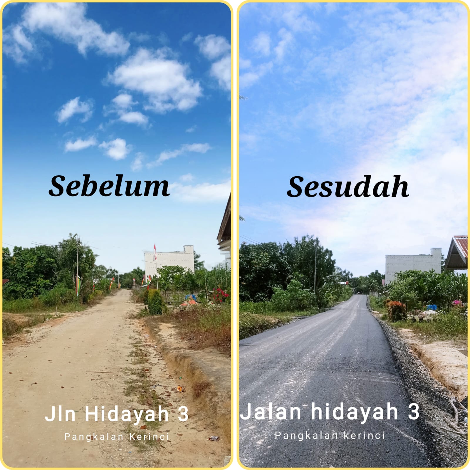 Salah satunya pembangunan jalan aspal di lingkungan RT. 007/RW.005 Hidayah 3 Pangkalan Kerinci Kota, Kecamatan Pangkalan Kerinci sepanjang 200 meter.